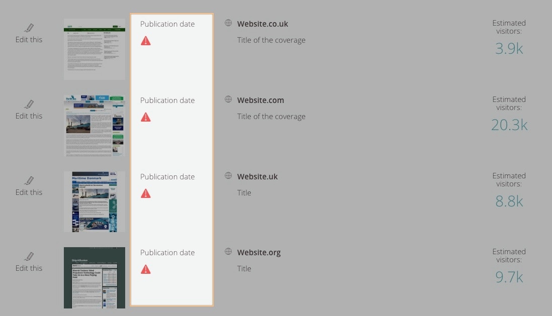 Where the coverage is missing a publication date